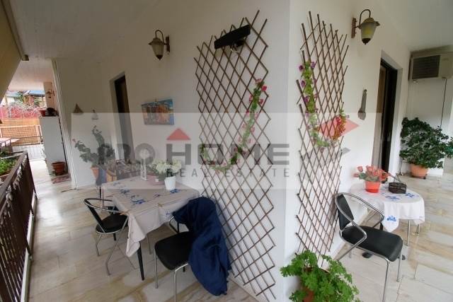 Προς πώληση μια ανεξάρτητη οριζόντια ιδιοκτησία σε μικρό κτήριο τεσσάρωνεπιπέδων κατασκευής με άδεια οικοδομής που εκδόθηκε το 1983. Αποτελείταιαπό διαμέρισμα υπερυψωμένου ισογείου 86 τμ.με 2 υπνοδωμάτια και μεγάλη ανεξάρτητη κουζίνα. Διαθέτει αυτόνομη θέρμανση με πετρέλαιο, περιμετρικά μπαλκόνια με τέντες, αυλήμε BBQ.